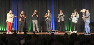 Nach einer kurzen Begrüßung durch die 1. Vorsitzende des Vereins, Rebekka Friedrich, betraten die sieben Ausnahmemusiker von Mnozil Brass die Bühne – und von der ersten Minute an war klar: Dies würde ein Abend voller musikalischer Highlights und bester Unterhaltung werden. Perfekt intoniert und mit atemberaubender Präzision bot die Band einen einzigartigen Mix aus traditioneller Blasmusik, klassischen Stücken, mitreißendem Jazz bis hin zur Rockmusik.