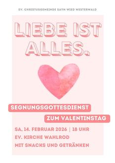 | 18:00 Uhr | Segnungsgottesdienst zum Valentinstag Kirche Wahlrod |