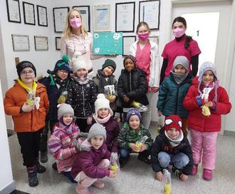 Die Vorschulkinder, welche sich „Die lustigen Eulen“ nennen, der städtischen Kindertagesstätte „Haus der kleinen Füße“ waren auf Entdeckungsreise in der Familienzahnarztpraxis Dr. Ruth Schäfer in Ransbach-Baumbach. Die Arbeitsgemeinschaft Kinder- und Jugendzahnpflege Westerwald fördert diesen Besuch mit dem Ziel Kindern spielerisch den Sinn vom Zähneputzen und zahngesunder Ernährung nahe zu bringen. Die Kinder unterschieden zahngesunde Lebensmittel von Lebensmitteln mit verstecktem Zucker und verdienten sich so einen Zahnorden. Auch das Zähneputzen am Modell klappte so gut, dass die Leistung mit einer Urkunde belohnt werden konnte. Zum Abschied gab es wie immer das Zahnputzpflegeset von der Arbeitsgemeinschaft Kinder- und Jugendzahnpflege Westerwald für jedes Kind. Die Vorschulkinder hatten sehr viel Spaß und haben den anderen Kindern aus der Kindertagesstätte stolz ihr Wissen weitergegeben. Zum Abschluss bedankten sich die Vorschulkinder mit einer selbstgestalteten Leinwand für den spektakulären Vormittag in der Praxis.