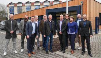 v.l.n.r.: Patrick Weyer - Werkleiter VGW Ransbach-Baumbach, Kürsad Avsar - erster Werkleiter VGW Ransbach-Baumbach, Lars Hörnig - Geschäftsführer Vereinige Wasserwerke Mittelrhein GmbH, Andreas Klute - Werkleiter VGW Montabaur, Alexander Häuser - Werkleiter VGW Höhr-Grenzhausen, Michael Merz - Bürgermeister VG Ransbach-Baumbach, Thilo Becker - Bürgermeister VG Höhr-Grenzhausen, Wolfgang Kochhan - Bereichsleiter Wasserwirtschaft Vereinigte Wasserwerke Mittelrhein GmbH, Alexandra Marzi - Bürgermeisterin VG Wirges, Michael Endlein - Technischer Werkleiter VGW Wirges, Daniel Zipperling - Stellvertretender Werkleiter VGW Höhr-Grenzhausen