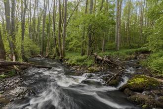 Anschließend setzen wir unsere Exkursion einige Kilometer bachabwärts fort. Um 10:30 Uhr starten wir an der Hilpischmühle zwischen Höhn und Großseifen. In einem besonders schönen und natürlichem Abschnitt ist das Flüsschen von Auwald umgeben und bewegt sich noch in seinem ursprünglichen Bachbett. Gewässerökologe Frank Steinmann zeigt uns die wichtigsten Bewohner. Er erklärt, wie Fließgewässer unsere Landschaft gestalten und welche Lebensgemeinschaften dort entstehen, wo die Natur noch freien Lauf hat.
