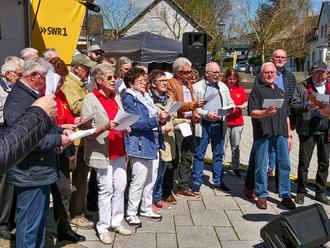 Der Männerchor Harmonie Rennerod sowie Carsten Geiss-Preuschoff nahmen sich dieser Aufgabe erfolgreich an und erstellten in wenigen Tagen ein musikalisches "Gesamtkunstwerk", das gegen 16 Uhr unter dem tosenden Applaus der zahllosen Zuschauer/innen Premiere hatte, vom Männerchor und weiteren Stimmen gekonnt und eindrucksvoll vorgetragen wurde.