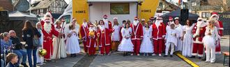 Keine leichte Aufgabe im späten Frühling, wenn man sich zwar noch an den grandiosen Weihnachtsmarkt in Rennerod vom Dezember erinnert, aber die entsprechende Kleidung wieder irgendwo tief im Keller schlummert. Noch aufwändiger war es, zehn Engel mit Flügelchen zu organisieren. Dank der Tatkraft vieler Menschen auf dem Platz gelang es zum Erstaunen aller Anwesenden, tatsächlich 17 Weihnachtsmänner und 17 Engelchen zu motivieren, die ob ihrer Vielzahl den SWR-Moderatoren die Begeisterung ins Gesicht schrieben.