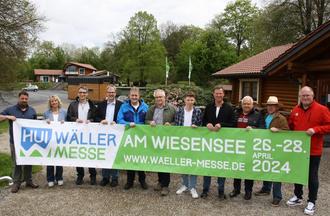 Copyright 2019 - Ulrike Preis - Am Wiesensee soll im April 2024 die 8. Hui-Wäller-Messe stattfinden. Stolz präsentieren Benjamin Becker, Silvia Hondrich, Bernd Kaufmann, Markus Hof, Gerrit Müller, Thomas Henritzi, Maurice Mühlenhaupt und Markus Mühlenhaupt (beide Café Seewies), Günter Preußer, Johannes Gerz und Peter Stotz das Werbebanner. (Text und Foto: Ulrike Preis)