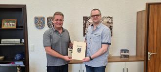 Bürgermeister Gerrit Müller dankte Herrn Höfler für die der Verbandsgemeinde erbrachten Dienste und überreichte eine Dankurkunde.