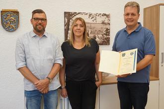 Bürgermeister Gerrit Müller und Ortsbürgermeister Gernot Brück freuen sich, dass sich so schnell eine junge, engagierte Bürgerin für dieses wichtige Amt zur Verfügung gestellt hat.