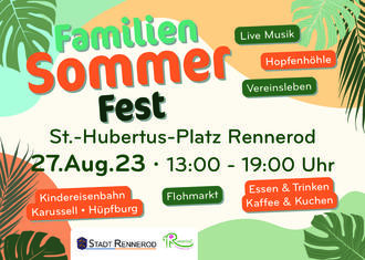 Die Stadt Rennerod und der Gewerbeverein Rennerod e.V. laden gemeinsam für Sonntag, den 27. August von 13 bis 19 Uhr zum Familiensonntag auf den St.-Hubertus-Platz im Herzen der Stadt ein.