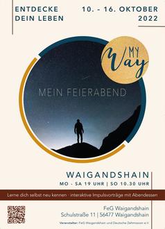 Waigandshain. Vom 10. bis 16. Oktober 2022 lädt die FeG Waigandshain in Zusammenarbeit mit der *dzm in die FeG (Schulstraße 11, 56477 Waigandshain) zu lebensbiografischen MyWay-Abenden ein, jeweils ab 19 Uhr.