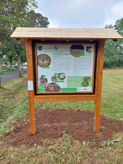 Die Info-Tafel zeigt die Vielfalt der Streuobstwiese
