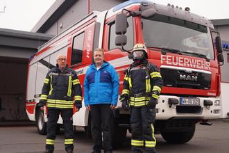 Foto (von links): Wehrleiter Heinz-Werner Schütz, Bürgermeister Gerrit Müller, stellvertretender Abteilungsleiter Ordnungs-/Sozialverwaltung Eugen Penk.