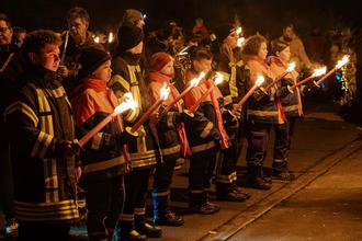 Den Auftakt bildete ein stimmungsvoller Kindergottesdienst in der katholischen Kirche, bei dem die Geschichte des heiligen Martin kindgerecht erzählt und gemeinsam gesungen wurde. Im Anschluss versammelten sich die Teilnehmer auf dem St.-Hubertus-Platz, wo der Umzug unter musikalischer Begleitung der Stadtkapelle Rennerod und im Fackelschein der Jugendfeuerwehr startete.