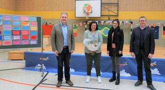Eine der größten Grundschulen der Verbandsgemeinde Rennerod hat eine neue Leitung: Carina Ludwig (2.v.l.) ist neue Rektorin, Larissa Löhner (2.v.re.) neue Konrektorin. Bürgermeister Gerrit Müller (li.) und Schulrat René Schermuly (re.) gratulierten dem neuen Team.