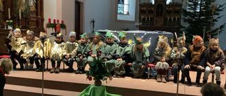 ...stand im Mittelpunkt der Weihnachtsandacht der Kinder der Kita Regenbogen in Marienrachdorf, zu der Eltern, Großeltern und Freunde eingeladen waren. Die Kinder erzählten in ihrem Weihnachtsspiel die Geschichte vom kleinen Tannenbaum, über den viele Tiere hinwegspringen konnten und der auf einmal doch noch groß genug war, um ein Weihnachtsbaum zu werden. Mit einem selbstgemachten Weihnachtsgeschenk an die Eltern verabschiedeten sich alle mit besten Wünschen für das Neue Jahr 2024.