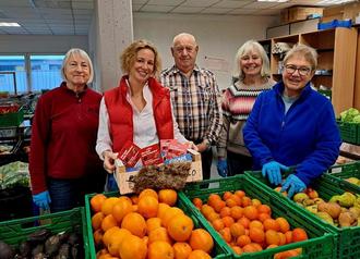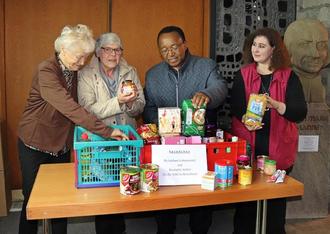 Doch nicht nur an Erntedank kann für die Tafel gespendet werden - die rote Sammelbox im Foyer der Kirche lädt auch weiterhin dazu ein, sie mit haltbaren Lebensmitteln, Konserven oder Drogerieartikeln zu Gunsten der Tafel zu befüllen.