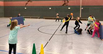Die Klassen 3a und 3c der Grundschule Herschbach probierten mit ihrer Sportlehrerin Frau Meder in den letzten Sportstunden verschiedene Völkerballvarianten aus, nachdem sie festgestellt hatten, dass das klassische Völkerballspiel nicht immer fair für alle Kinder ist.
