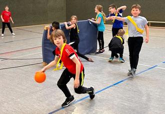 Ein Ballspiel zu verändern wurde zuvor auch schon beim Zombieball erprobt. Die Kinder hatten sich in Gruppen eigenständig Regeln überlegt und diese ausprobiert. Aus zwei Ballspielen haben die Schüler also zahlreiche Spiele entwickelt, die nun immer wieder gerne gespielt werden.