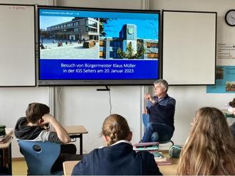 Zum Ende seiner fast ein Vierteljahrhundert währenden Amtszeit besuchte uns der Verbandsgemeindebürgermeister Herr Klaus Müller und ließ vier verschiedene Klassen bzw. Kurse an seinem reichen Erfahrungsschatz als langjähriger Kommunalpolitiker auszugsweise teilhaben. So ermöglichte er den Schülerinnen und Schülern im Gesellschaftslehre- bzw. Sozialkundeunterricht Politik der kleinsten politischen Einheit aus Sicht eines in der Region sehr stark vernetzten und beliebten Berufspolitikers - auch und besonders durch seine offene und ehrliche Art sowie berufliche und private Einblicke - zum Anfassen.