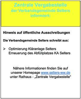 Die Verbandsgemeinde Selters schreibt aus: