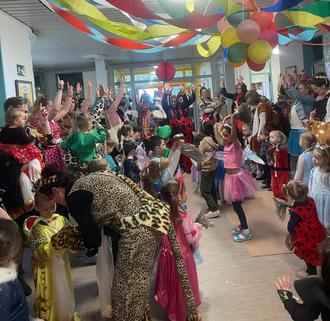 Ein besonderes Highlight war der Besuch der Möhnen, die mit ihrem traditionellen Besuch für Begeisterung sorgten. Gemeinsam wurde gesungen, gelacht und natürlich kräftig gefeiert. Bunte Kostüme, fröhliche Musik und leckere Naschereien machten den Tag zu einem unvergesslichen Erlebnis für die kleinen Jecken.