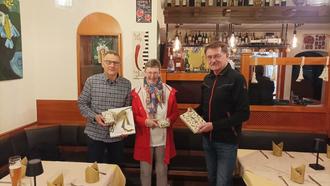 Übergabe der Sachpreise an die Preisträger Arno Siry und Karin Fild durch Joachim Kuchinke.
