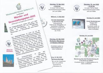 Der Westerwald-Verein Selters hat sein neues Wander- und Veranstaltungsprogramm 2025 vorgelegt. Es kann jetzt über den QR-Code abgerufen werden oder liegt in gedruckter Form (bis zur Jahresmitte) vor. An unserem Treffpunkt für Stadtführungen auf dem Marktplatz, im Café Rockenfeller oder im Touristikbüro der Verbandsgemeinde Selters kann man es mitnehmen. Am Sonntag, 6. April, geht es weiter mit einer acht Kilometer langen Frühlingswanderung durchs Aubachtal. Eine Muttertagswanderung (ca. sechs Kilometer) soll es am 11. Mai zur Burg Reichenstein bei Puderbach geben. Am Tag des Wanderns, am 14. Mai, führt uns Wilfried Göbler zu sagenhaften Orten in unserer nahen Heimat. Er zeigt uns die „Zehntgarben“ bei Hartenfels und erzählt die Sage dazu, dann geht es weiter zur Gerichtslinde nach Rückeroth und auch durch den Herschbacher Lohwald, wo uns wiederum die Sage vom „Lohweibchen“ vorgetragen wird. Rund zehn Kilometer geht es an diesem Tag zu geschichts- und sagenhaften Plätzen der Heimat. Am 20. Mai bietet Madelon Bölinger wieder eine meditative Wanderung über unsere heimischen Waldwege an. Es gibt so viele Orte, an denen man herrlich entspannen und abschalten kann. Besonders für Familien haben wir gemeinsam mit dem Hauptverein eine Wanderung für Jung und Alt – als Familienwanderung – im Programm. Rund um den Biebrichsbach (bei Montabaur) führt uns der Naturschutzwart und ehemalige Forstdirektor Hartmut König und zeigt, was die Natur, Wald und Bachläufe im Westerwald alles als Erlebnis anbieten und lernen können sicher Jung und Alt dann noch viel. Für Mitglieder des Westerwald-Vereins ist diese Tour frei; vereinsfremde Familien zahlen 15 Euro. Am 22. Juni geht es zum „Ewigen Eis“ in Dornburg und am 29. Juni führen Bernhard Görg und Madelon Bölinger rund elf Kilometer über die Wanderwege Q1 und Q2 zum Dreiherrenstein.