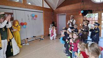 Ausgelassen feierten die Kinder mit dem Kitateam, verkleidet mit eigenen, selbstgemachten Orden für ihre Kostüme in der Turnhalle. Es war ein traumhafter und von Leckereien versüßter Tag.