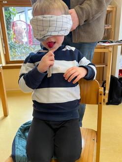 Ein besonders lustiges Angebot war das „Probieren und Raten“ von Obst und Gemüse. Mit verbundenen Augen durften die Kinder verschiedene Früchte und Gemüsesorten kosten. Da wurde geschmatzt, gelacht und manchmal auch wild geraten: „Ist das ein Apfel?“, „Nein, eine Birne!“ oder „Bäh, das ist bestimmt eine Zwiebel!“ Zum Glück lag meistens doch etwas Leckeres auf dem Teller.