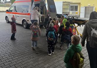 Von der Einfahrt des Krankenwagens bis hin zu allen wichtigen Utensilien, die man zur Erstversorgung eines Patienten benötigt, hat sie uns alles ganz genau erklärt.