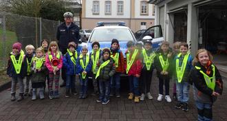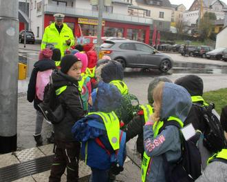 Am 24.03.2023 ist es endlich so weit: die Dinos (Schulanfänger 2023) dürfen wieder die Polizeidienststelle in Montabaur besuchen. Der Polizist, Herr Hommrich, empfängt alle in der Innenstadt und wir lernen, die Ampeln richtig zu nutzen oder die Straße an einem Zebrastreifen zu überqueren. Das ist beim Verkehrsaufkommen in der Stadt schon etwas anderes als beim Überqueren der Bahnhofstraße in Marienrachdorf. In kleinen Gruppen dürfen die künftigen Schulanfänger das Überqueren der Hauptstraße üben, bis sie dann auf dem Weg die Polizeiwache erreichen.
