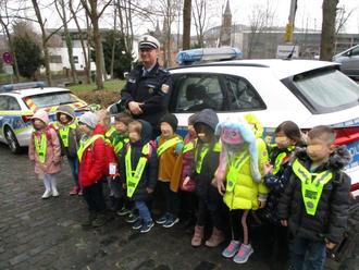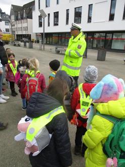 Am 15.03.2024 besuchten die Dinos (Schulanfänger 2024) die Polizeidienststelle in Montabaur. Der Polizist Herr Hommrich empfängt alle in der Innenstadt und wir lernen, die Ampeln richtig zu nutzen oder die Straße an einem Zebrastreifen zu überqueren.