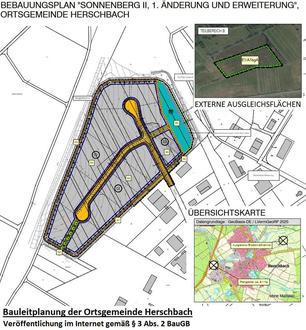 Der Ortsgemeinderat Herschbach hat in seiner Sitzung am 12.12.2022 beschlossen, ein Verfahren zur 1. Änderung und Erweiterung des Bebauungsplans „Sonnenberg II“ einzuleiten.