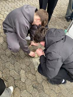 Zur Vorbereitung der Zeitzeugenbegegnung hatte die Klasse 10b zudem am vorherigen Tag einen Rundgang durch Selters gemacht und die Standorte der ehemaligen Synagoge, der Mikwe und der ehemaligen Wohnorte jüdischer Familien besucht. Dazu haben wir uns elf Stolpersteine angeguckt, von verschiedenen Familien, die wir zusammen gesäubert haben.