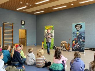 Als der Autor Sascha Gutzeit unsere Grundschule besuchte und aus den spannenden sowie humorvollen Kinderbüchern „Detektivspinne Luise“ und „Stadt, Land, Flussdetektive - Gefahr an der alten Schleuse“ vorlas, lauschten ihm unsere Schüler wie gebannt. Dabei spielte er Theater und schlüpfte in viele verschiedene Rollen, indem er seinen Figuren auf humorvolle Weise unterschiedliche Stimmen verlieh.