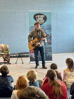 Als er dann auch noch die Gitarre hervorholte, um mit den Kindern zu singen, wurde sein Vortrag zu einem lebendigen Hörspiel. Durch diese Kombination von Lesung und Musical begeisterte er alle Jahrgangsstufen, sodass wir uns an dieser Stelle für die gelungene Lesung herzlich bedanken möchten!