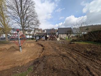 Im Anschluss wird Fallschutz eingebracht und die Fläche neu eingesät.