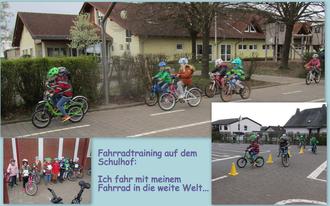 Das diesjährige Fahrradsicherheitstraining für die Schulanfänger wurde erstmals auf dem Schulhof der Grundschule durchgeführt. Nachdem jedes Schulanfängerkind sein Fahrrad mit in den Kindergarten gebracht hatte, fand zuerst einmal eine Einweisung statt. Gemeinsam wurde überlegt, wie ein verkehrssicheres Fahrrad ausgerüstet sein muss und welche Regeln für das Fahrradfahren gelten. Außerdem wurde die Bedeutung des Fahrradhelmes nicht nur im Film anschaulich erklärt, sondern auch vor Ort mit einem Osterei getestet. Geschützt im Helm geht das Ei nicht kaputt, wenn es darin herunterfällt!