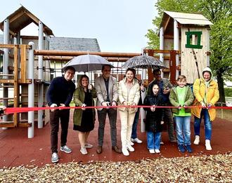 Dass man trotz Regenwetter ein tolles Schulfest feiern kann, bewies die Schulgemeinschaft der Grundschule Marienrachdorf am Freitag, 19. April 2024. Geladen hatten Förderverein, Schulelternbeirat und Kollegium der Schule, um das neu errichtete Klettergerüst offiziell einzuweihen. Nachdem Schulleiterin Annette Comes mit Freude das Schulfest eröffnete, nahm Pastoralreferent Matthias Scherer die Einsegnung des neuen Spielgerätes vor. Bei den zahlreichen Sponsoren und Helfern bedankten sich anschließend Fördervereinsvorsitzende Rebekka Reitmaier und Schulelternbeiratsvorsitzende Simone Spohr. Bürgermeister Oliver Götsch und Ortsbürgermeister Björn Schäfer zeigten sich sehr zufrieden über das vollendete Projekt und wünschten den Kindern für die Zukunft nur das Beste beim Balancieren, Klettern, Rutschen und Hangeln. Die Sebastian-Stahl-Stiftung als einer der Förderer der neuen Gerätelandschaft stellte Andreas Stahl vor. Auch er wünschte den Kindern zukünftig viel Spaß beim Spielen und wenig Blessuren. Ganz herzlich bedankten sich die Kinder, vertreten durch Schülersprecherin Hannah Frank und Schülersprecher Linus Hannappel, für die neue Attraktion auf dem Schulgelände. Nach dem Zerschneiden des Flatterbandes verteilten sich alle Besucher auf Turnhalle, Mehrzweckraum und Schulgebäude, wo viele tolle Aktionen auf sie warteten. Ob Hüpfburg, Schwungtuch, Kinderschminken, Glitzertattoos, Basteln, Dosenwerfen, Kistenrennen oder Besichtigung des Feuerwehrautos, jede Station hat Klein und Groß begeistert. Für eine besonders unterhaltsame Atmosphäre sorgte der Musikverein Marienrachdorf, dem man bei leckerem Kaffee und Kuchen lauschen konnte. Dank des großen Engagements aller Beteiligten wurde der Regentag zu einem Tag mit strahlenden Gesichtern.