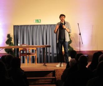 Nektarios, der als „wahrscheinlich beste Mensch der Welt“ angekündigte Kabarettist war mit seinem Programm „Das Problem sind die Leute“ zu Gast - sich selbst nicht ausgeschlossen. So versprach er gleich zu Beginn, eines Tages ein Schloss zu bauen - aus Klopapier und Nudeln.