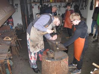 Wieder am Tageslicht angekommen stand Schmieden auf dem Programm. Jeder konnte unter Anleitung von zwei Schmieden einen Umhänger selbst schmieden.