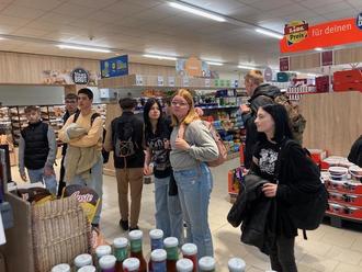 Filialleiter Herr Friedrich und Ausbildungskoordinator Herr Watzelhan empfingen die Gruppe. Während der Begehung der Filiale erfuhren die SchülerInnen die unterschiedlichen Schritte von der Lieferung eines Produktes, über das Einsortieren ins Verkaufsregal bis hin zum Verkauf und der Nachbestellung im Hinblick auf die dreijährige Ausbildung.