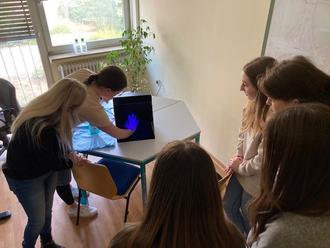 Die Auszubildenden im zweiten Lehrjahr hatten für ihre Gäste fünf unterschiedliche Stationen aufgebaut. An diesen konnten die SchülerInnen erfahren, welche Aspekte zur Ausbildung und zum Beruf gehören. Sie lernten, wie man Hände medizinisch korrekt desinfiziert und den Blutzucker richtig misst. Außerdem konnten sie selbst an einem Demenztraining teilnehmen.