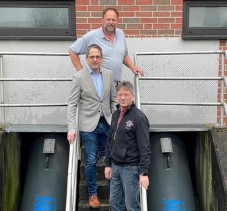 von vorne: Werkleiter Achim Linder, Bürgermeister Oliver Götsch, Abwassermeister Bernd Schenkelberg