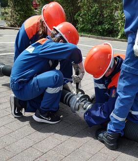 Insgesamt 29 Mitglieder verschiedener Jugendfeuerwehren aus der Verbandsgemeinde bewiesen bei theoretischen und praktischen Übungen ihr Können. So gehörten das Setzen eines Standrohres zur Wasserentnahme oder der Aufbau einer Saugleitung genauso zu den Aufgaben wie das Transportieren einer Puppe auf einer Trage mit verbundenen Augen. Unter den prüfenden Blicken des Kreisjugendfeuerwehrwartes Thomas Krekel und seiner Stellvertreterin Katharina Wimmert sowie Stellvertreter Florian Bach meisterte der Feuerwehrnachwuchs alle Disziplinen mit Bravour, so dass allen Teilnehmern am Nachmittag das Abzeichen der Jugendflamme Stufe 2 überreicht werden konnte.