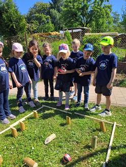 Zur Begrüßung sangen die Kinder unser Begrüßungslied - ein toller Einstieg, um das Eis zu brechen. Das engagierte Pflegeteam hatte im Außengelände verschiedene Spiele vorbereitet, darunter Wikingerschach, Boccia und unterschiedliche Ballspiele. Diese wurden von den Kindern gemeinsam mit den Seniorinnen und Senioren ausprobiert.