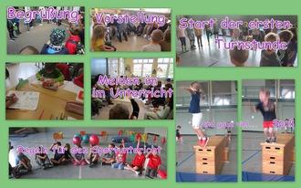 Die Schulanfänger 23 durften am 24.05.23 ihre künftige Grundschule kennenlernen. Nach dem Schulweg vom Kindergarten zur Schule wurden sie schon auf dem Schulhof von ihren Lehrerinnen und der Schulleitung herzlich begrüßt. Schön, dass auch die Erstklässler der Nachbar-KiTas zu Besuch waren und sich alle kennenlernen konnten. Nach der ersten Schulstunde konnten alle den Pausenhof mit den vielen Spielangeboten entdecken. Begeisterung gab es für die gemeinsame Sportstunde in der großen Sporthalle. Ein riesiger Parcours durfte ausprobiert werden und so verging die Zeit wie im Flug.