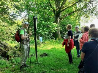 Altbürgermeister Bernhard Görg bei seinem Vortrag mit Wandernden.