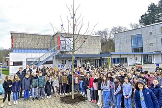 Der Baum ist nun nicht nur ein sichtbares Zeichen für den Frieden, sondern bald auch eine grüne Insel, auf dem sonst eher grauen Schulhof. Er wird Schatten spenden und zum Verweilen einladen. Gleichzeit steht er für den Klimaschutz, da er in den nächsten 100 Jahren aktiv CO2 speichern wird. Ferner freuen sich die Bienen der Bienen-AG auf den neuen Nektarspender.