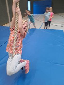 Die Seniorflöhe sind interessiert durch die Schule gegangen und haben sich am Unterricht beteiligt. In der Schulstunde und auch am Turntag haben die Kinder einige Freunde, Geschwisterkinder und bekannte Gesichter aus dem Kindergarten getroffen. Der Turntag hat den Kindern besonders gut gefallen und sie haben sich mutig an Geräte getraut, die sie vorher nicht kannten.