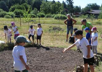 Bei schönstem Wetter wanderten wir durch den Wald zum Campingplatz in Freilingen. Der Weg war sehr spannend, weil die Kinder viel entdeckten, z.B. Frösche und andere Tiere und Pflanzen. Am Campingplatz wurden wir herzlich von Steffi und Josef vom Kur- und Verkehrsverein empfangen und durften gemeinsam eine Blumenwiese einsäen, verschiedene Bäume betrachten und über den Spielparcours toben. Antje spendierte uns noch ein Eis, das wir am Strandbad bei den Schwänen genießen durften. Zum Abschluss des schönen Ausfluges plantschten die Kinder noch begeistert mit den Füßen im Postweiher. Um das Wachsen der Blumenwiese miterleben zu dürfen, schickte Steffi uns schon ein Foto von dem keimenden Samen und ein erstes Grün ist schon zu entdecken. Herzlichen Dank dem Kur- und Verkehrsverein für die Mühe und Gastfreundschaft.