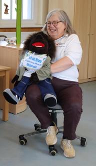 Maria Görg, eine Mitarbeiterin des Deutschen Roten Kreuzes, besuchte uns in der Kita. Dabei lernten wir, was es bedeutet, Leben zu retten. Bruno, die Handpuppe, die als Stellvertreter des Jugendrotkreuzes galt, begleitete uns durch den Tag.